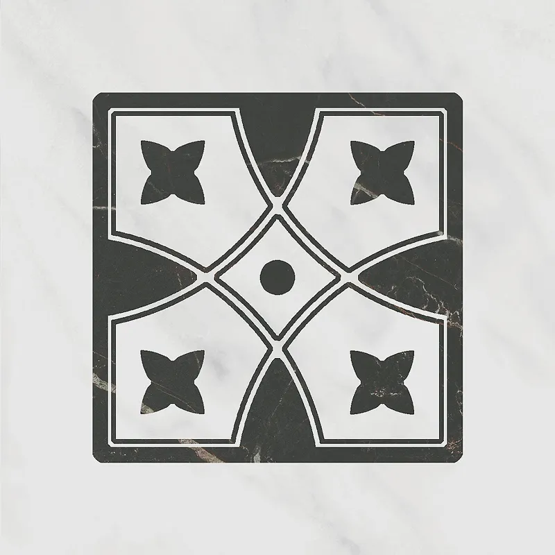 Керамический декор Kerama Marazzi Келуш 1 грань черно-белый TOC004 9,8х9,8 см идеально подходит для отделки ванных комнат, прихожих и общественных холлов. Его глянцевая поверхность и уникальный орнамент делают данную плитку отличным выбором для интерьеров в стиле ар-деко и минимализм. Керамический декор легко сочетается с белоснежным санфаянсом и блестящим металлом, создавая стильные и гармоничные пространства.