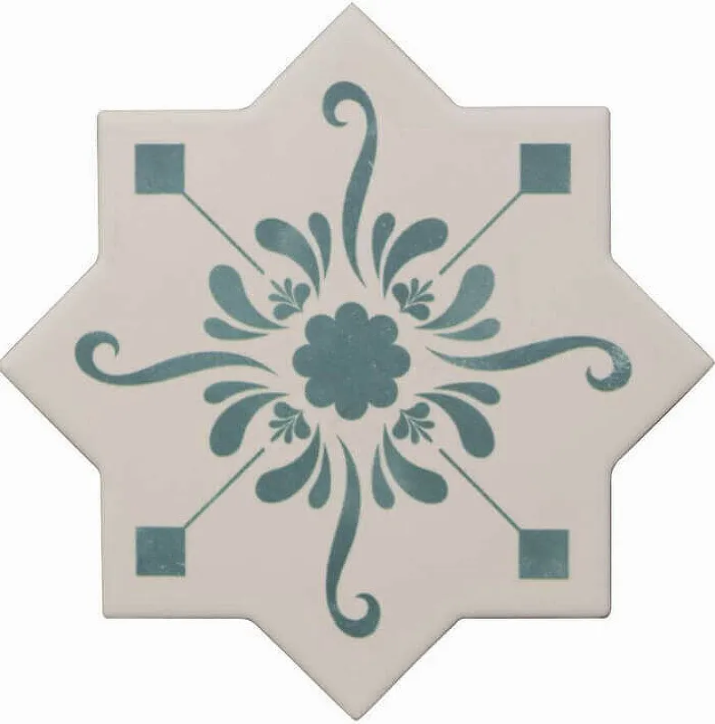 Керамогранит Cevica Beсolors Star Dec. Stencil Lagoon CV67394 13,25х13,25 см идеально подходит для облицовки акцентных стен в коммерческих помещениях и жилых интерьерах. Этот керамогранит от испанского бренда Cevica выполнен в форме восьмиконечной звезды с орнаментом и впишется в любой современный, винтажный или прованский интерьер.