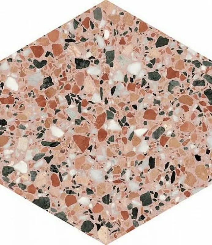 - Эстетическая привлекательность: Керамогранит с рисунком терраццо и розовым оттенком легко вписывается в классический и современный интерьер, создавая уют и стиль.