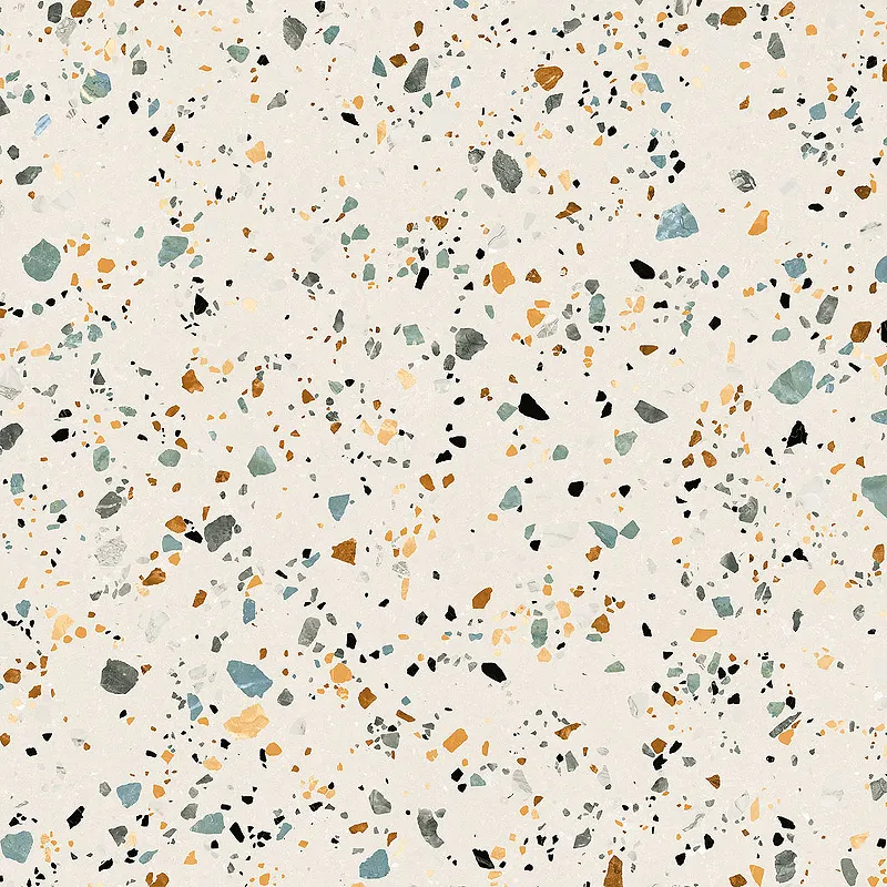 - Эстетическая привлекательность: Квадратная плитка бежевого цвета с терраццо-рисунком добавит изысканности в интерьер в стиле лофт.