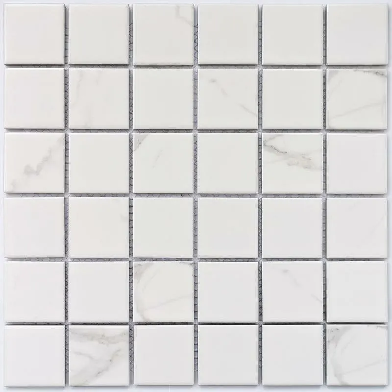 Керамогранитная мозаика Bonaparte Calacatta-48 — идеальное решение для тех, кто хочет создать элегантный интерьер с элементами классического мрамора. Эта универсальная мозаика с матовой поверхностью подходит для отделки стен, колонн и рабочих зон на кухне. Благодаря высокой износостойкости и устойчивости к перепадам температур, она станет отличным выбором для ванной, туалета или даже бассейна.