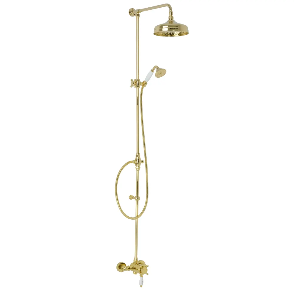 KING Душевой настенный гарнитур (см-ль д/душа-термостат/колонна/верхн.душ/шланг/ручной душ),золото арт-31800