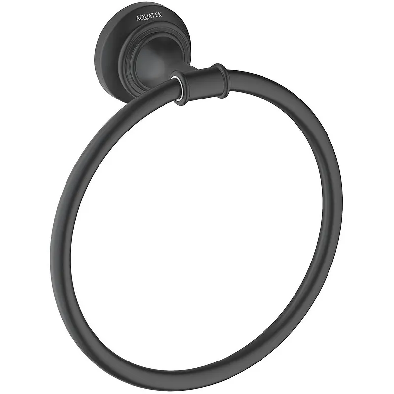 Кольцо для полотенец Aquatek Классик AQ4512MB.Характеристики: Цвет: черный матовый. Материал: латунь. Размеры (ШхВхД): 160х179х65 мм. Метод крепления: шурупы. Монтаж: на стену. В комплекте поставки: Кольцо для полотенец. Монтажный комплект.
