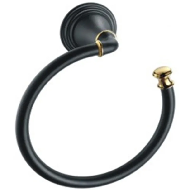 Кольцо для полотенец Fixsen Luksor FX-71611B в ванную комнату.Выполнено в элегантном дизайне, который будет органично смотреться в интерьере ванной в современным стиле. Использованы материалы: сплав металлов, латунь с Черным покрытием и деталями в цвете Золото. Крепление на стену шурупами (в комплекте поставки). Размеры: 18x20x7,5 см. Блистерная упаковка.