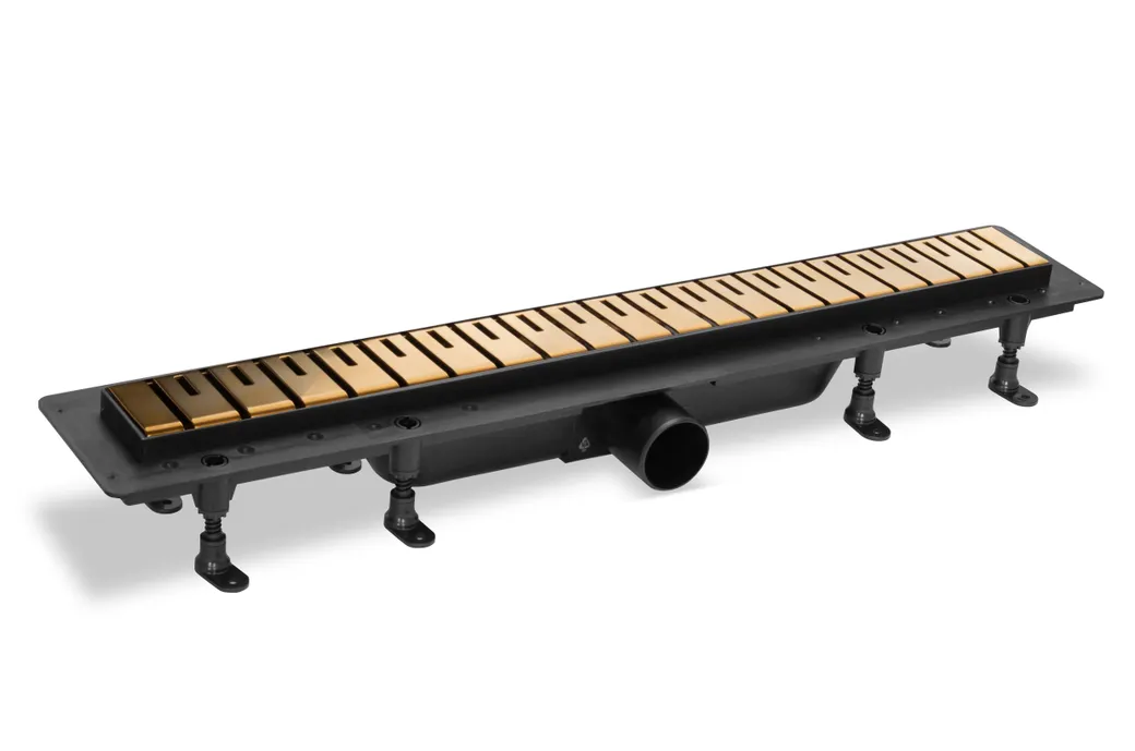 Комбинированный пластиковый душевой канал с металической решеткой 8, матовое золото, L=850 мм арт-SZA8850