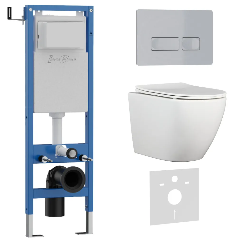 Комплект 3в1 IBERICA BLANCA инсталляция SILENCIO MINI, унитаз BILBAO ALTO белый, кнопка смыва ESTI-R хром матовый арт-IB.001M.BLA.234.214