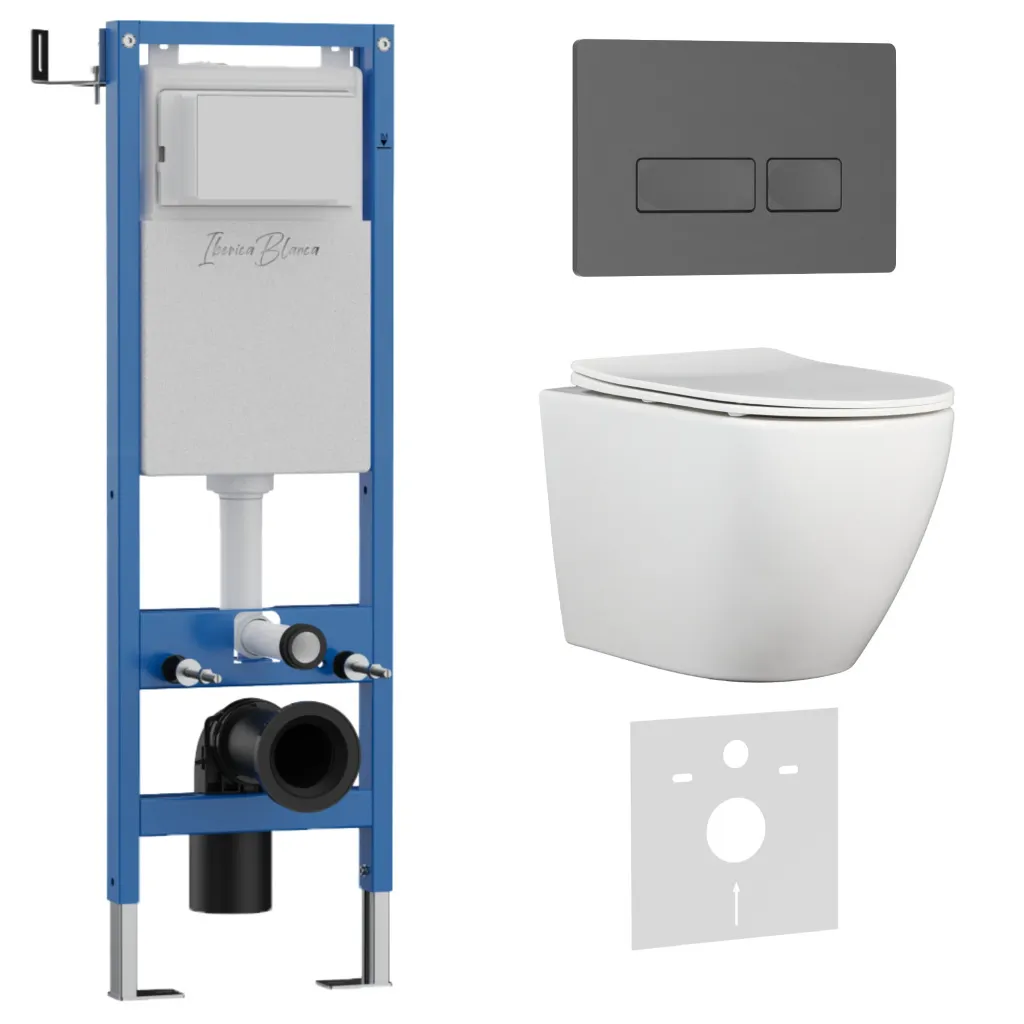 Комплект 3в1 IBERICA BLANCA инсталляция SILENCIO MINI, унитаз BILBAO ALTO белый, кнопка смыва ESTI-R серый матовый арт-IB.001M.BLA.231.218