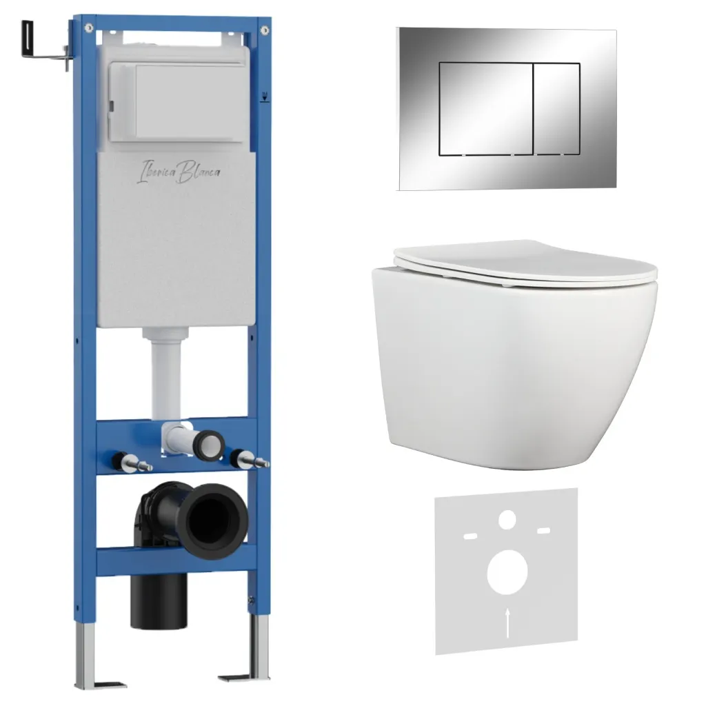 Комплект 3в1 IBERICA BLANCA инсталляция SILENCIO MINI, унитаз BILBAO ALTO белый, кнопка смыва ESTI-S хром глянцевый арт-IB.001M.BLA.231.852