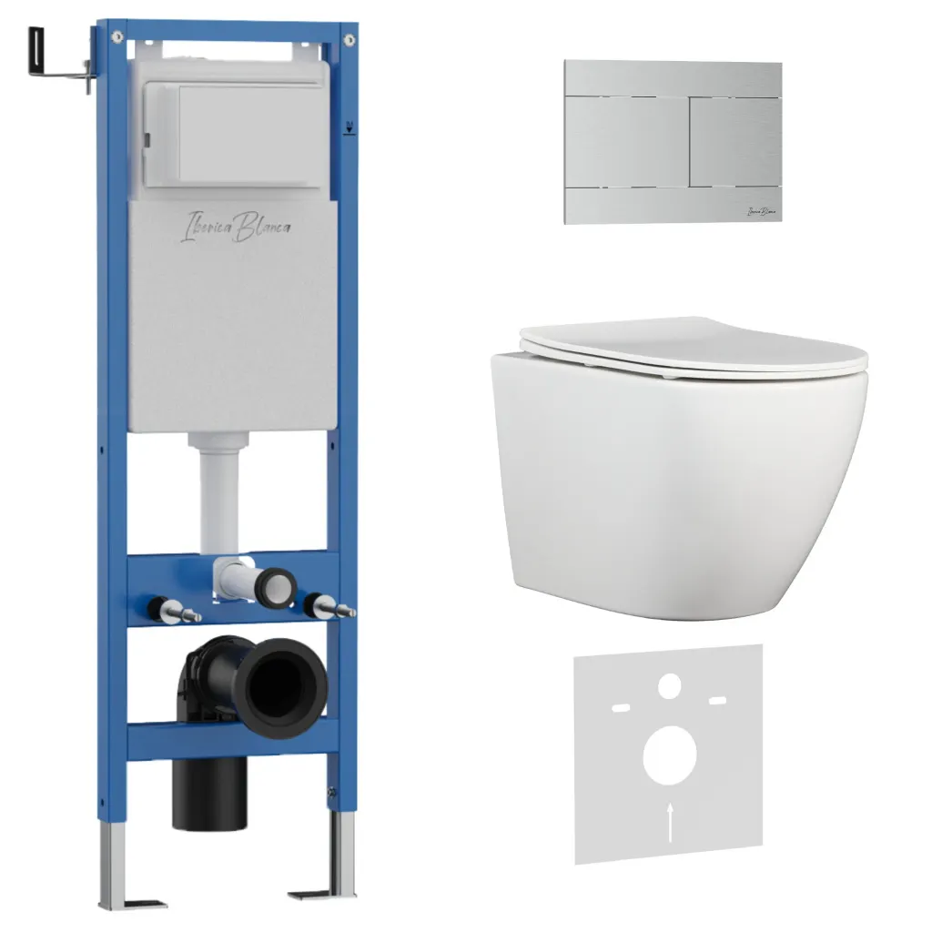 Комплект 3в1 IBERICA BLANCA инсталляция SILENCIO MINI, унитаз BILBAO ALTO белый, кнопка смыва INOX-R хром матовый арт-IB.001M.BLA.234.1501