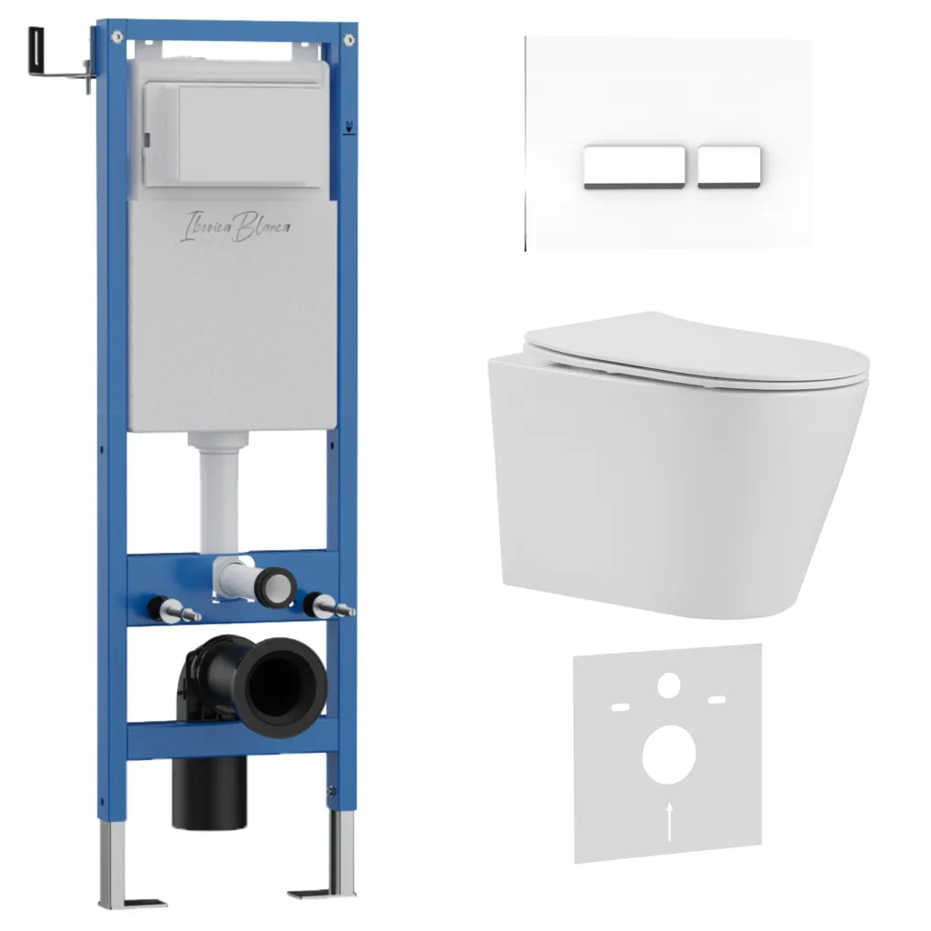 Комплект 3в1 IBERICA BLANCA инсталляция SILENCIO MINI, унитаз BURGOS ALTO белый, кнопка смыва CRYSTAL-R белый глянцевый арт-IB.001M.BRA.234.2210