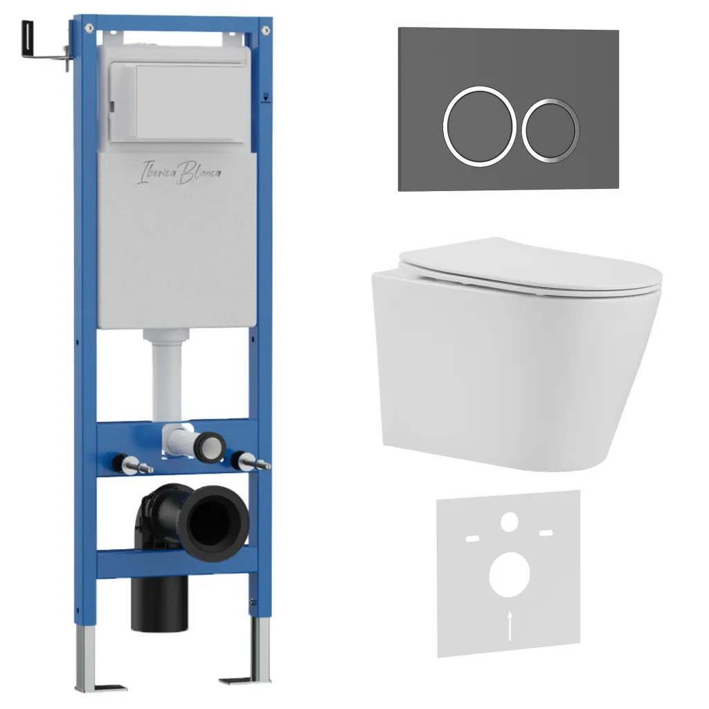 Комплект 3в1 IBERICA BLANCA инсталляция SILENCIO MINI, унитаз BURGOS ALTO белый, кнопка смыва ESTI-O серый матовый арт-IB.001M.BRA.234.827