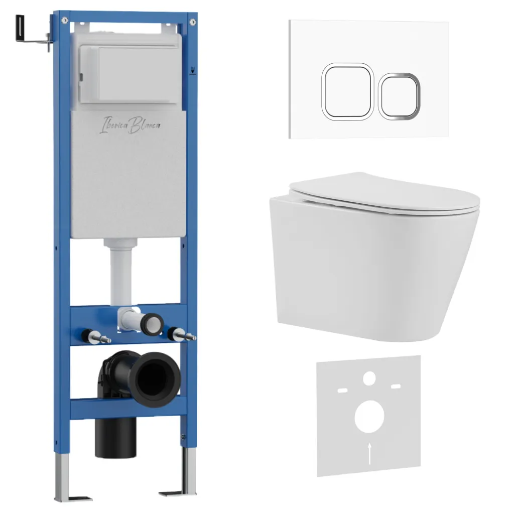 Комплект 3в1 IBERICA BLANCA инсталляция SILENCIO MINI, унитаз BURGOS ALTO белый, кнопка смыва ESTI-Q белый глянцевый арт-IB.001M.BRA.234.831