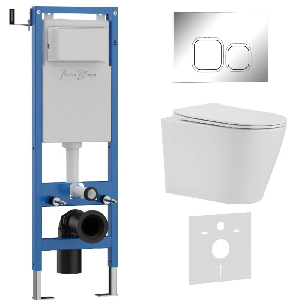 Комплект 3в1 IBERICA BLANCA инсталляция SILENCIO MINI, унитаз BURGOS ALTO белый, кнопка смыва ESTI-Q хром глянцевый арт-IB.001M.BRA.231.833