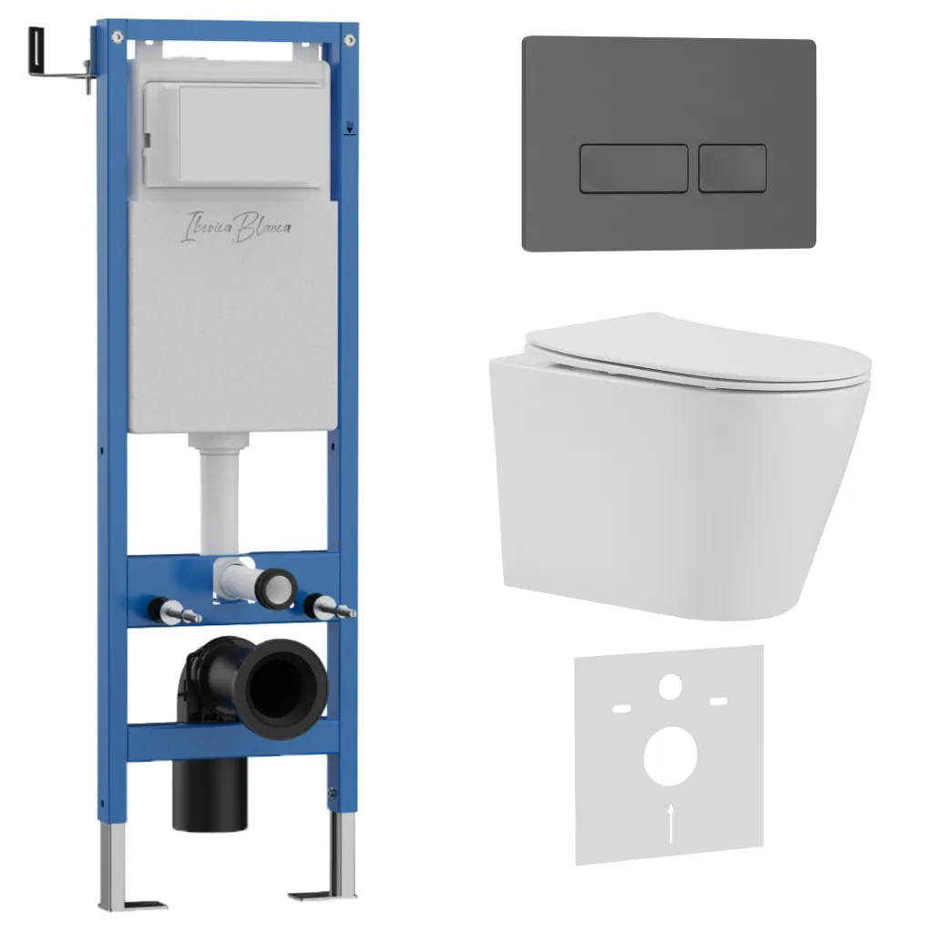 Комплект 3в1 IBERICA BLANCA инсталляция SILENCIO MINI, унитаз BURGOS ALTO белый, кнопка смыва ESTI-R серый матовый арт-IB.001M.BRA.234.218