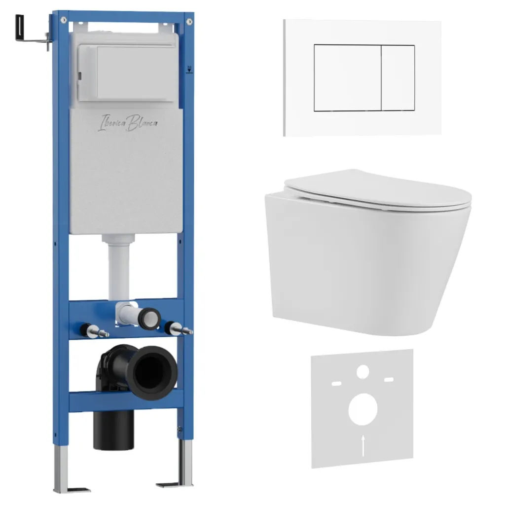Комплект 3в1 IBERICA BLANCA инсталляция SILENCIO MINI, унитаз BURGOS ALTO белый, кнопка смыва ESTI-S белый глянцевый арт-IB.001M.BRA.231.855