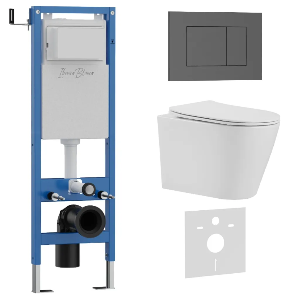 Комплект 3в1 IBERICA BLANCA инсталляция SILENCIO MINI, унитаз BURGOS ALTO белый, кнопка смыва ESTI-S серый матовый арт-IB.001M.BRA.234.856