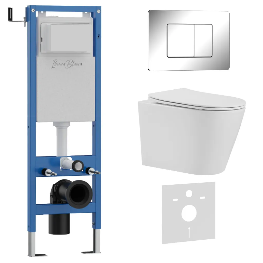 Комплект 3в1 IBERICA BLANCA инсталляция SILENCIO MINI, унитаз BURGOS ALTO белый, кнопка смыва INOX-C хром глянцевый арт-IB.001M.BRA.231.1131