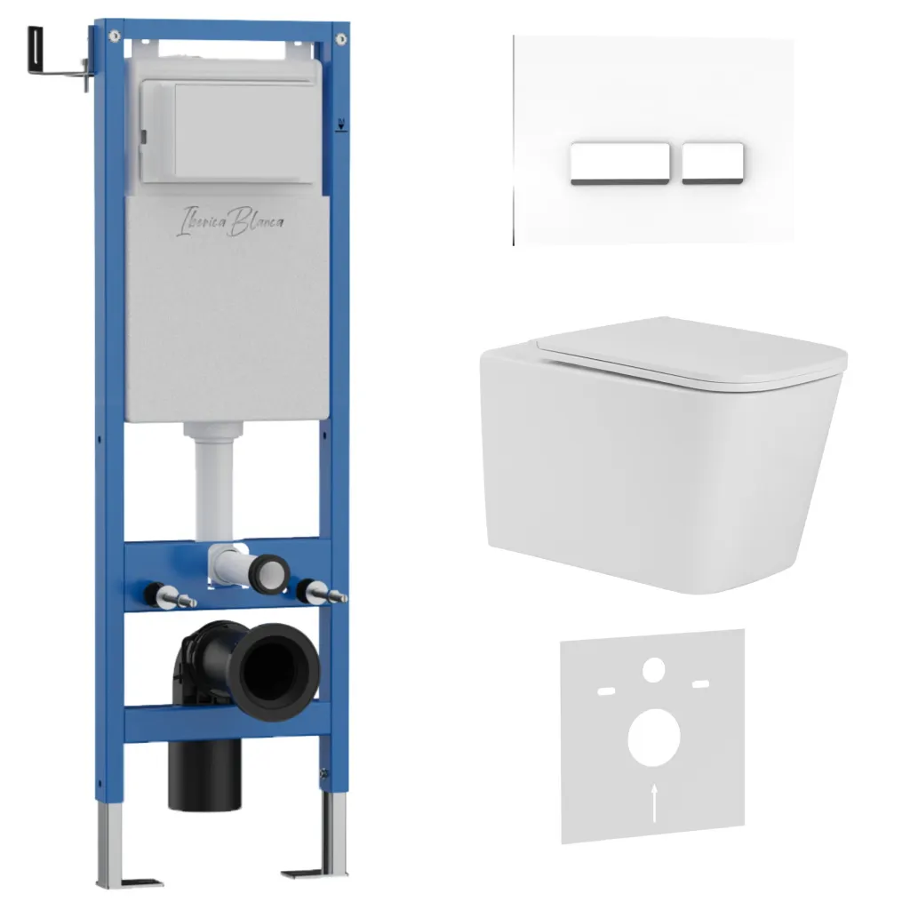 Комплект 3в1 IBERICA BLANCA инсталляция SILENCIO MINI, унитаз TOLEDO ALTO белый, кнопка смыва CRYSTAL-R белый глянцевый арт-IB.001M.TLA.234.2210