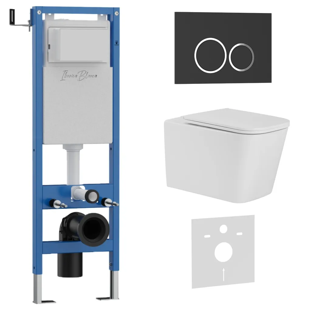 Комплект 3в1 IBERICA BLANCA инсталляция SILENCIO MINI, унитаз TOLEDO ALTO белый, кнопка смыва ESTI-O черный матовый арт-IB.001M.TLA.234.822