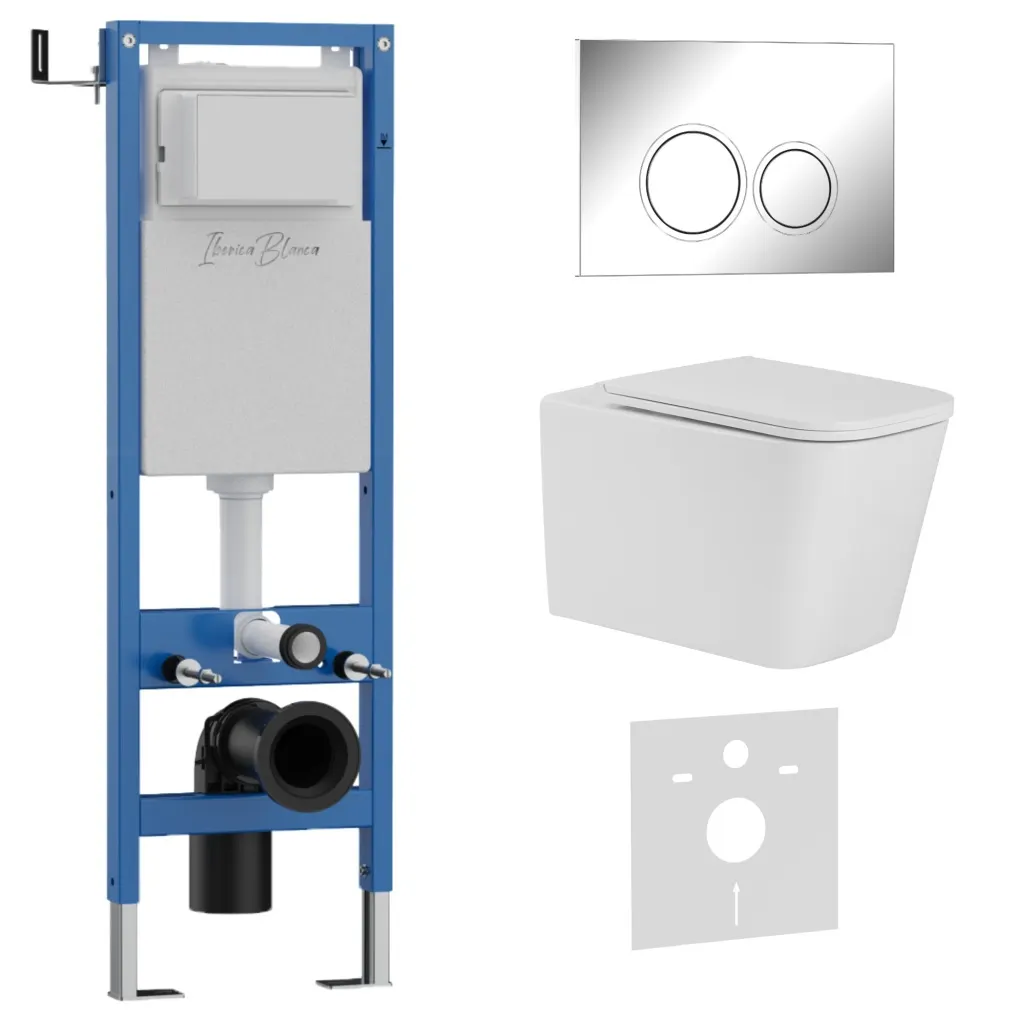 Комплект 3в1 IBERICA BLANCA инсталляция SILENCIO MINI, унитаз TOLEDO ALTO белый, кнопка смыва ESTI-O хром глянцевый арт-IB.001M.TLA.231.823