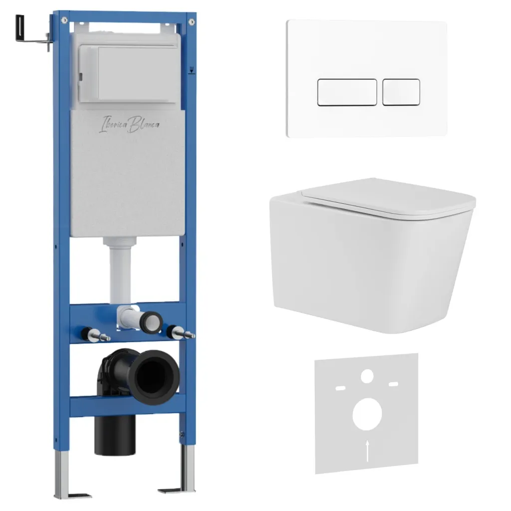 Комплект 3в1 IBERICA BLANCA инсталляция SILENCIO MINI, унитаз TOLEDO ALTO белый, кнопка смыва ESTI-R белый глянцевый арт-IB.001M.TLA.231.211