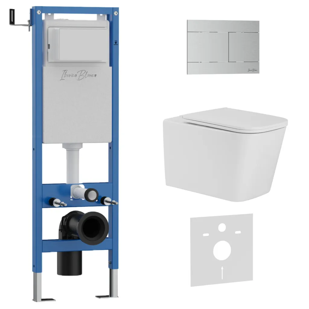 Комплект 3в1 IBERICA BLANCA инсталляция SILENCIO MINI, унитаз TOLEDO ALTO белый, кнопка смыва INOX-R хром матовый арт-IB.001M.TLA.234.1501