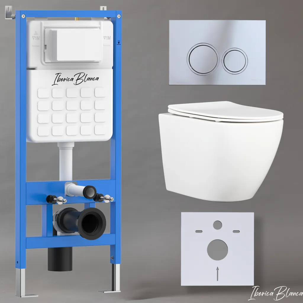 Комплект 3в1 IBERICA BLANCA инсталляция SILENCIO, унитаз BILBAO ALTO белый, кнопка смыва ESTI-O хром глянцевый арт-IB001.BLA.234.823