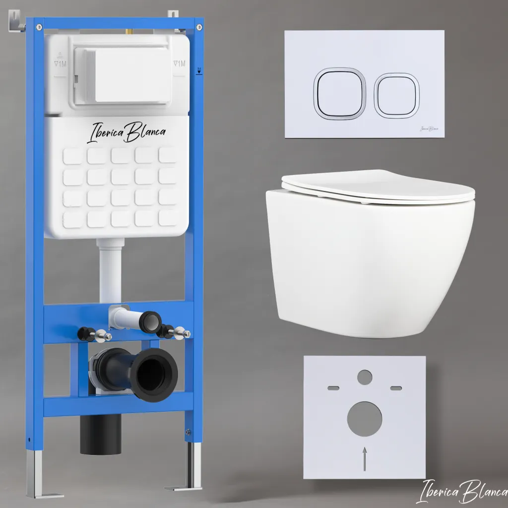 Комплект 3в1 IBERICA BLANCA инсталляция SILENCIO, унитаз BILBAO ALTO белый, кнопка смыва ESTI-Q белый глянцевый арт-IB001.BLA.231.831