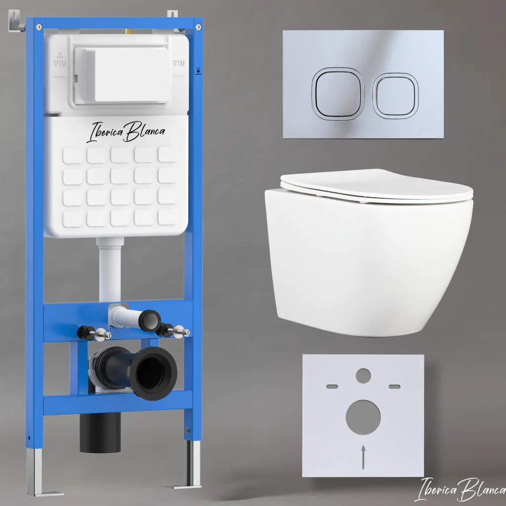 Комплект 3в1 IBERICA BLANCA инсталляция SILENCIO, унитаз BILBAO ALTO белый, кнопка смыва ESTI-Q хром глянцевый арт-IB001.BLA.234.833