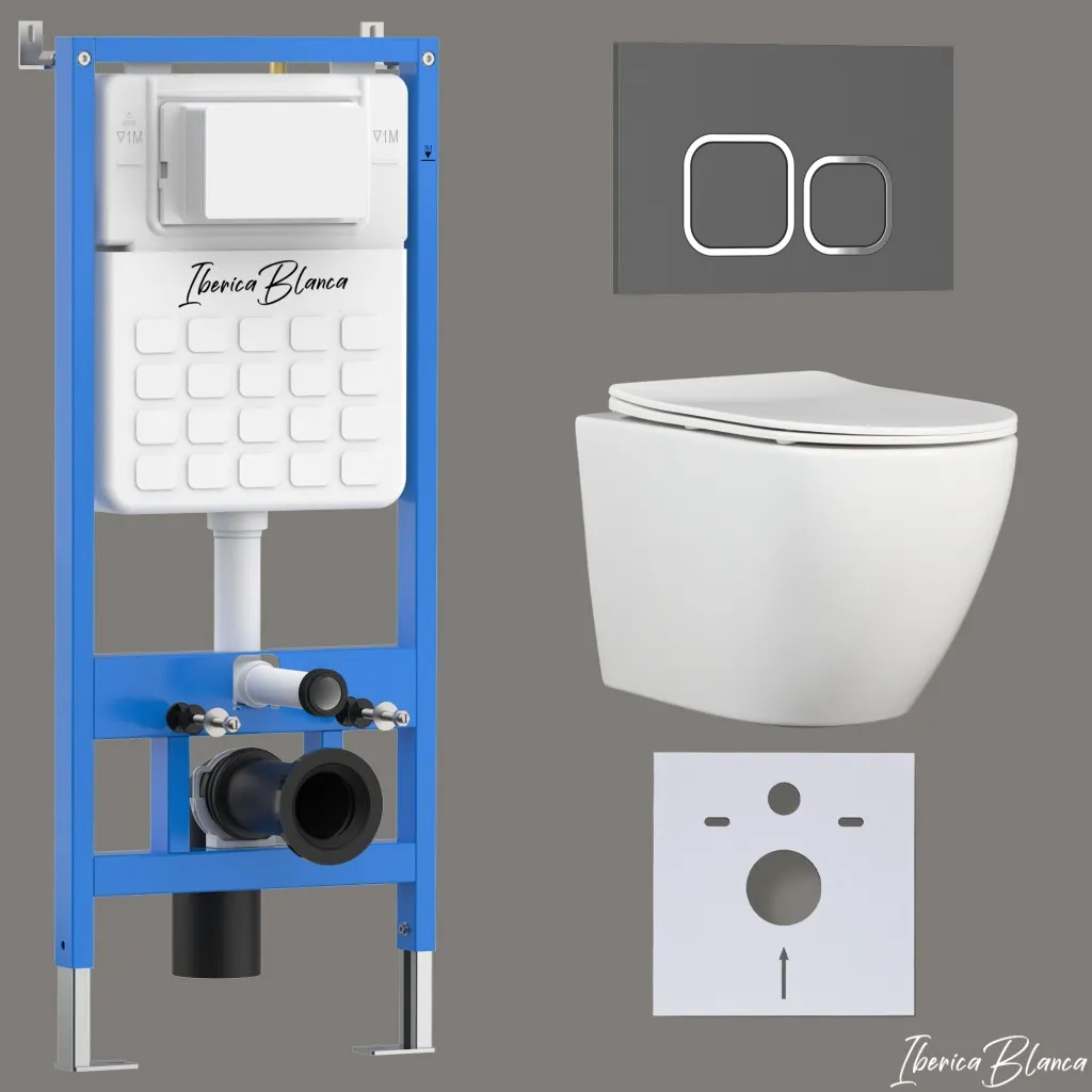 Комплект 3в1 IBERICA BLANCA инсталляция SILENCIO, унитаз BILBAO ALTO белый, кнопка смыва ESTI-Q серый матовый арт-IB001.BLA.231.837