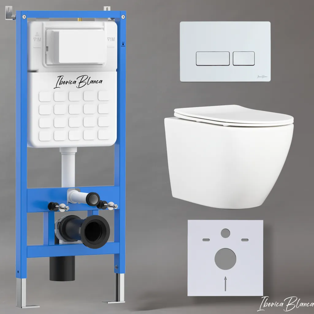 Комплект 3в1 IBERICA BLANCA инсталляция SILENCIO, унитаз BILBAO ALTO белый, кнопка смыва ESTI-R белый глянцевый арт-IB001.BLA.234.211