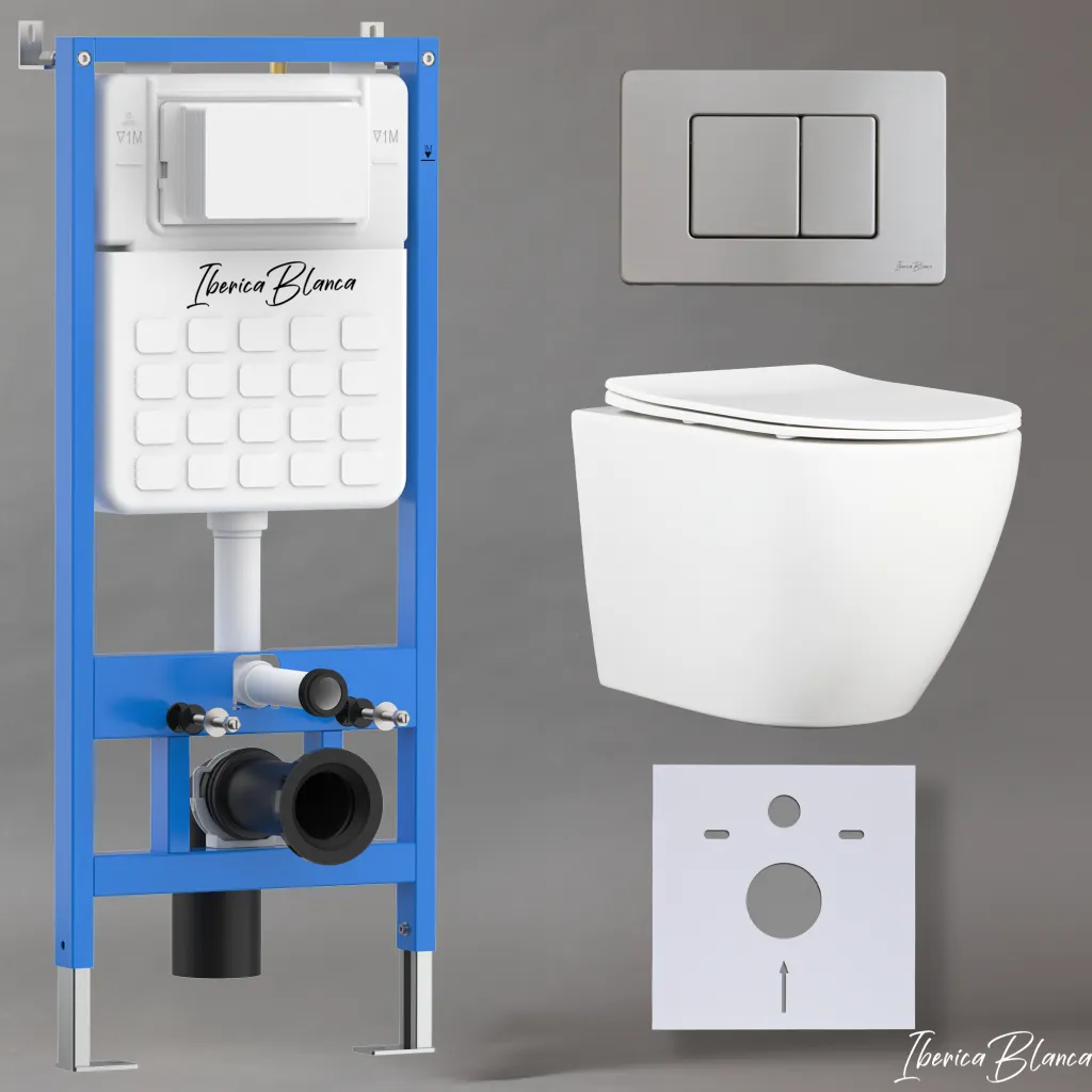 Комплект 3в1 IBERICA BLANCA инсталляция SILENCIO, унитаз BILBAO ALTO белый, кнопка смыва INOX-C хром матовый арт-IB001.BLA.234.1132