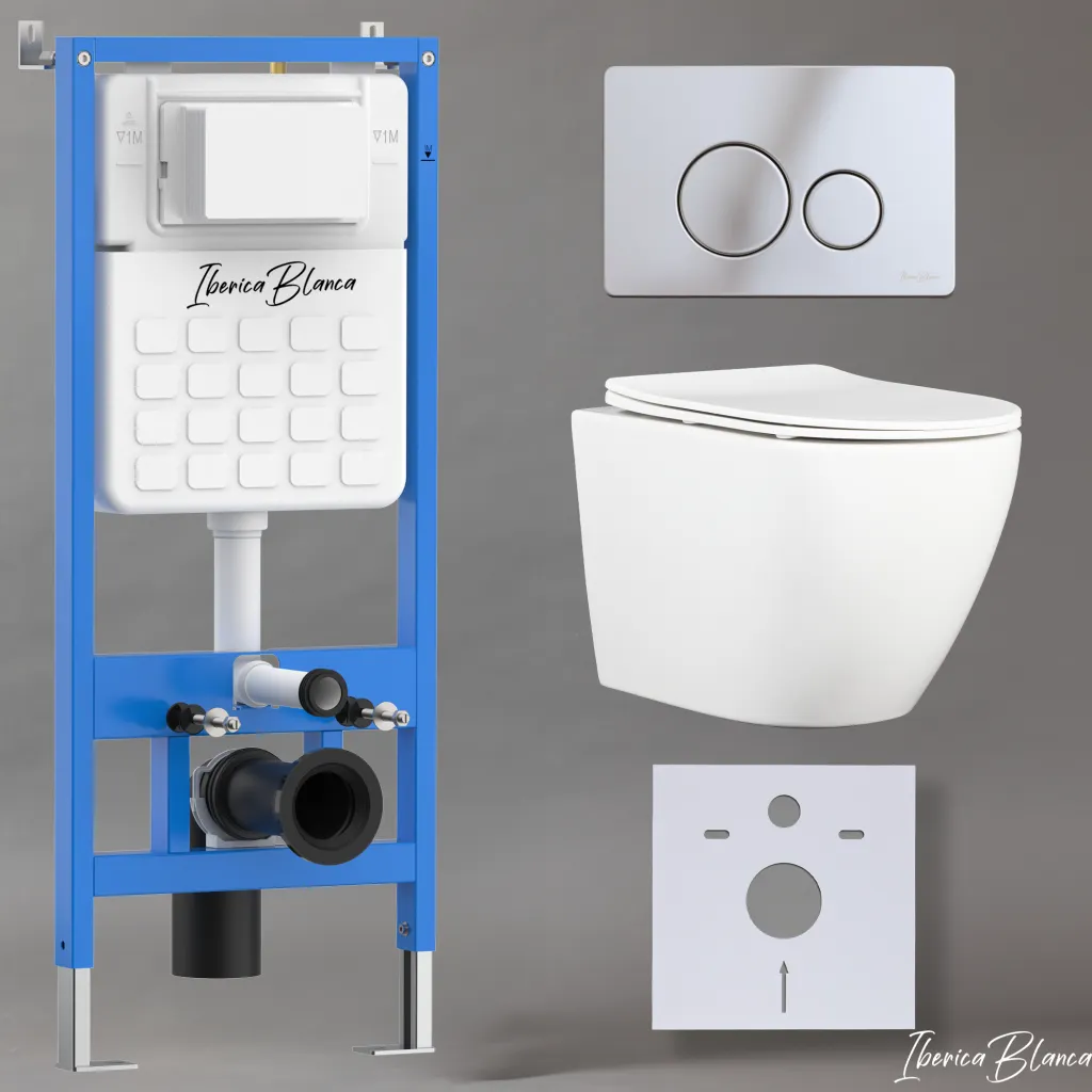 Комплект 3в1 IBERICA BLANCA инсталляция SILENCIO, унитаз BILBAO ALTO белый, кнопка смыва INOX-O хром глянцевый арт-IB001.BLA.231.8131