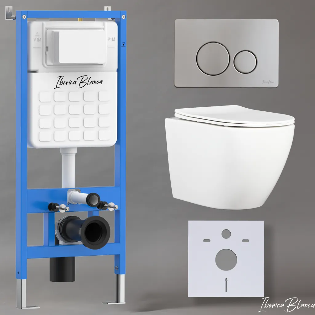 Комплект 3в1 IBERICA BLANCA инсталляция SILENCIO, унитаз BILBAO ALTO белый, кнопка смыва INOX-O хром матовый арт-IB001.BLA.231.8132