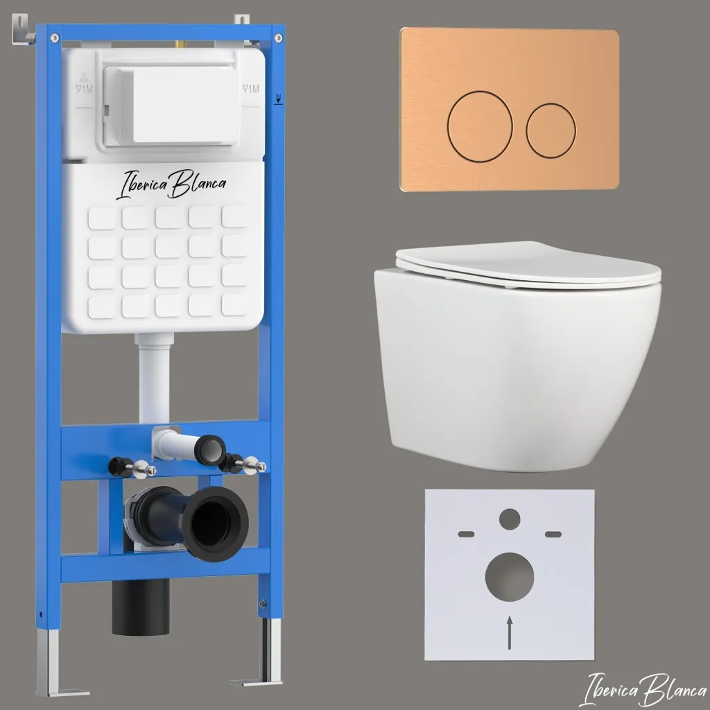 Комплект 3в1 IBERICA BLANCA инсталляция SILENCIO, унитаз BILBAO ALTO белый, кнопка смыва INOX-О розовое золото матовое арт-IB001.BLA.234.8172