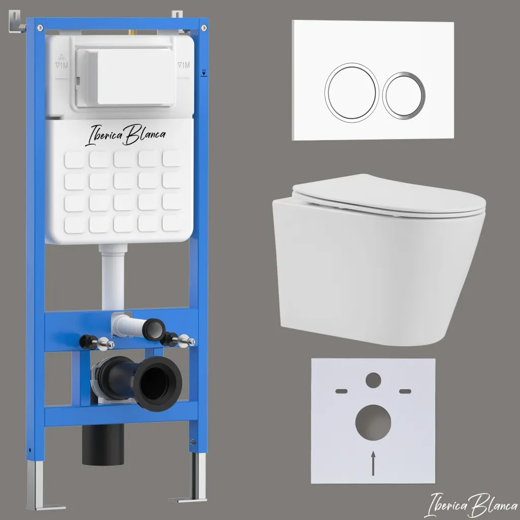 Комплект 3в1 IBERICA BLANCA инсталляция SILENCIO, унитаз BURGOS ALTO белый, кнопка смыва ESTI-O белый глянцевый арт-IB001.BRA.231.821
