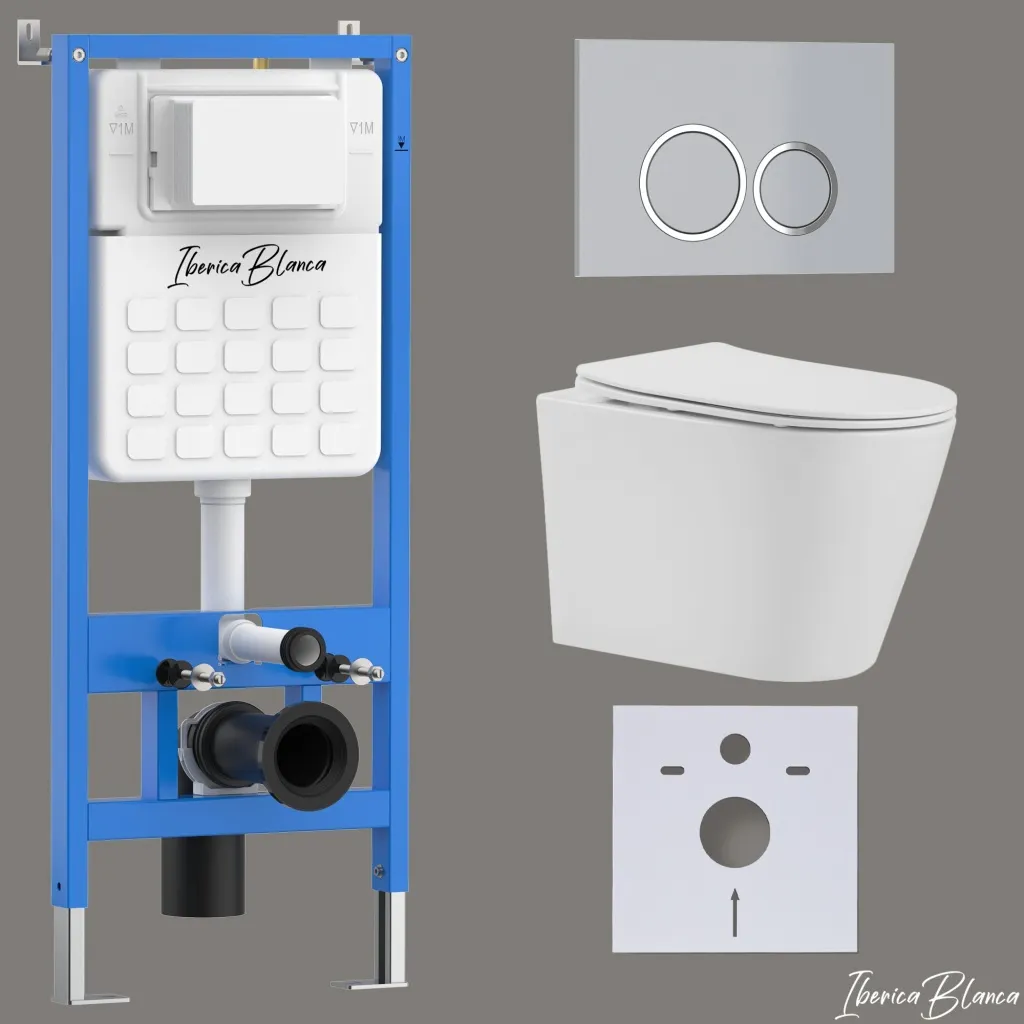 Комплект 3в1 IBERICA BLANCA инсталляция SILENCIO, унитаз BURGOS ALTO белый, кнопка смыва ESTI-O хром матовый арт-IB001.BRA.231.824