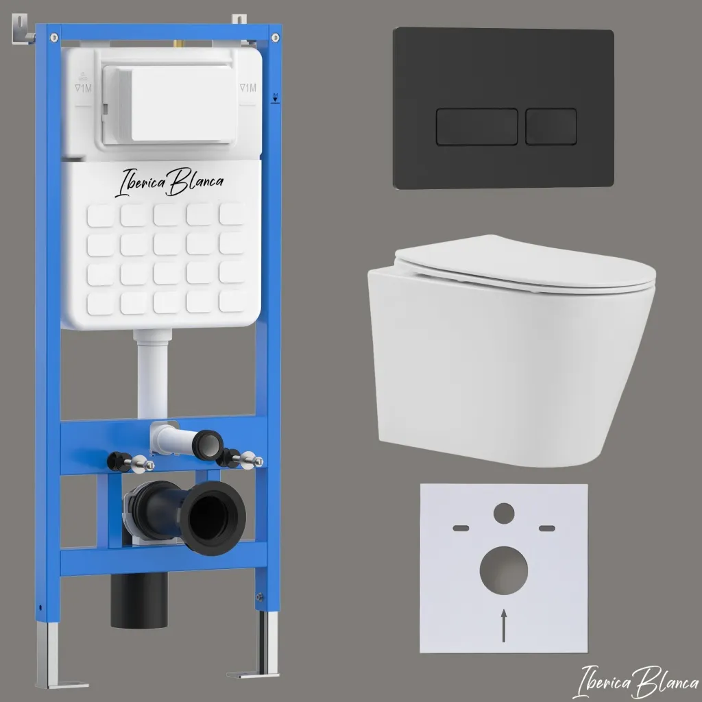 Комплект 3в1 IBERICA BLANCA инсталляция SILENCIO, унитаз BURGOS ALTO белый, кнопка смыва ESTI-R черный матовый арт-IB001.BRA.234.212
