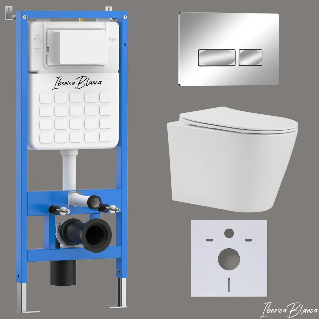 Комплект 3в1 IBERICA BLANCA инсталляция SILENCIO, унитаз BURGOS ALTO белый, кнопка смыва ESTI-R хром глянцевый арт-IB001.BRA.234.213