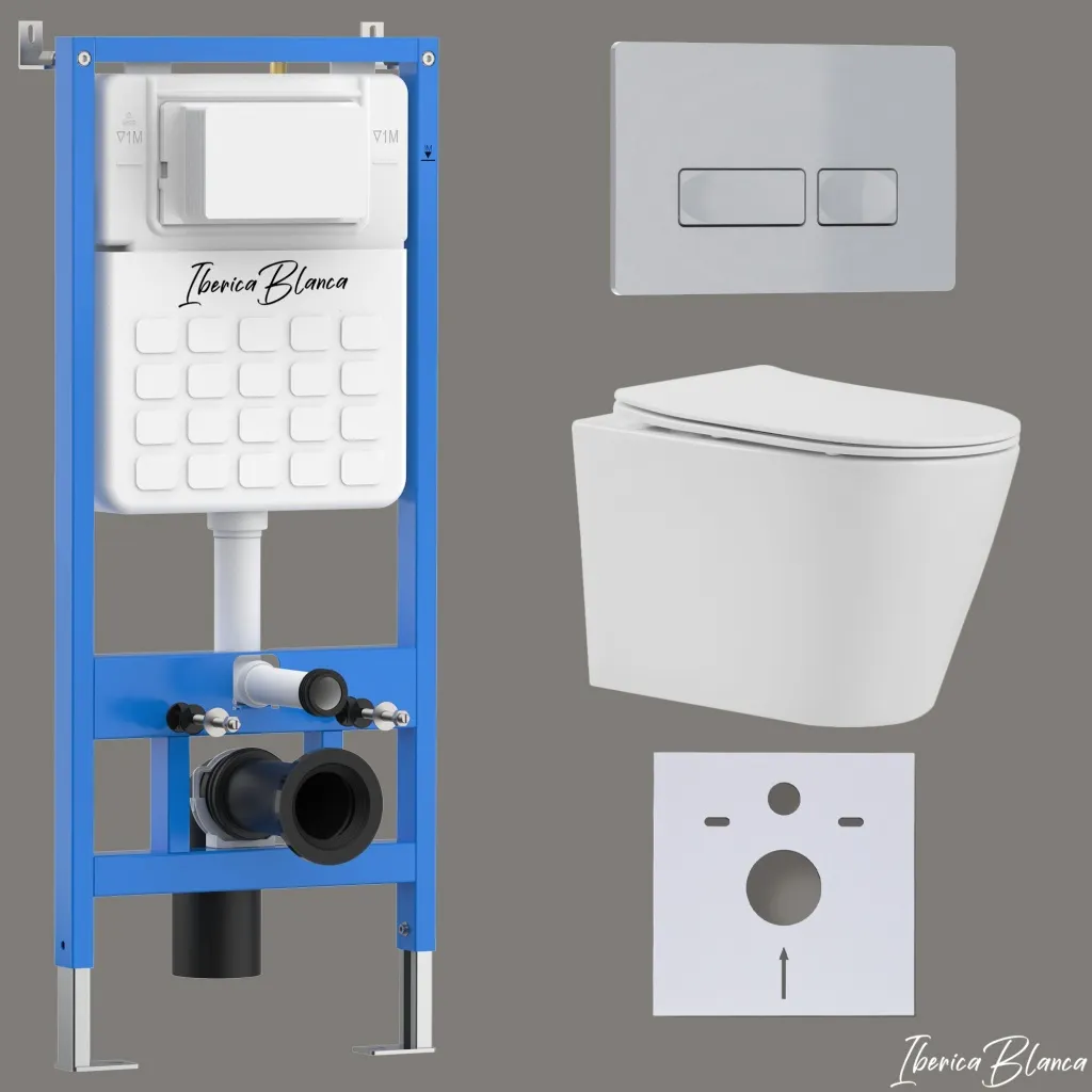 Комплект 3в1 IBERICA BLANCA инсталляция SILENCIO, унитаз BURGOS ALTO белый, кнопка смыва ESTI-R хром матовый арт-IB001.BRA.234.214