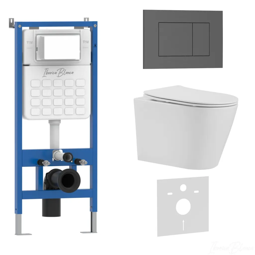 Комплект 3в1 IBERICA BLANCA инсталляция SILENCIO, унитаз BURGOS ALTO белый, кнопка смыва ESTI-S серый матовый арт-IB001.BRA.231.856