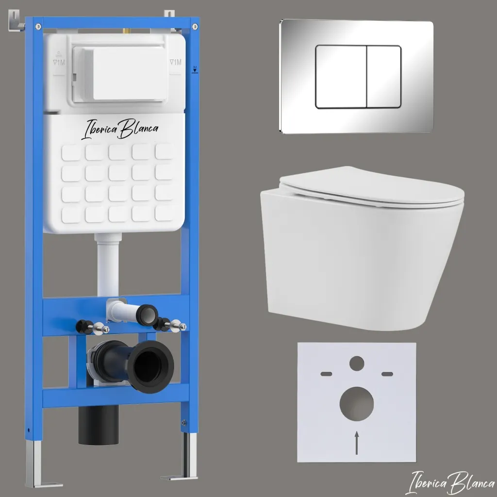 Комплект 3в1 IBERICA BLANCA инсталляция SILENCIO, унитаз BURGOS ALTO белый, кнопка смыва INOX-C хром глянцевый арт-IB001.BRA.234.1131