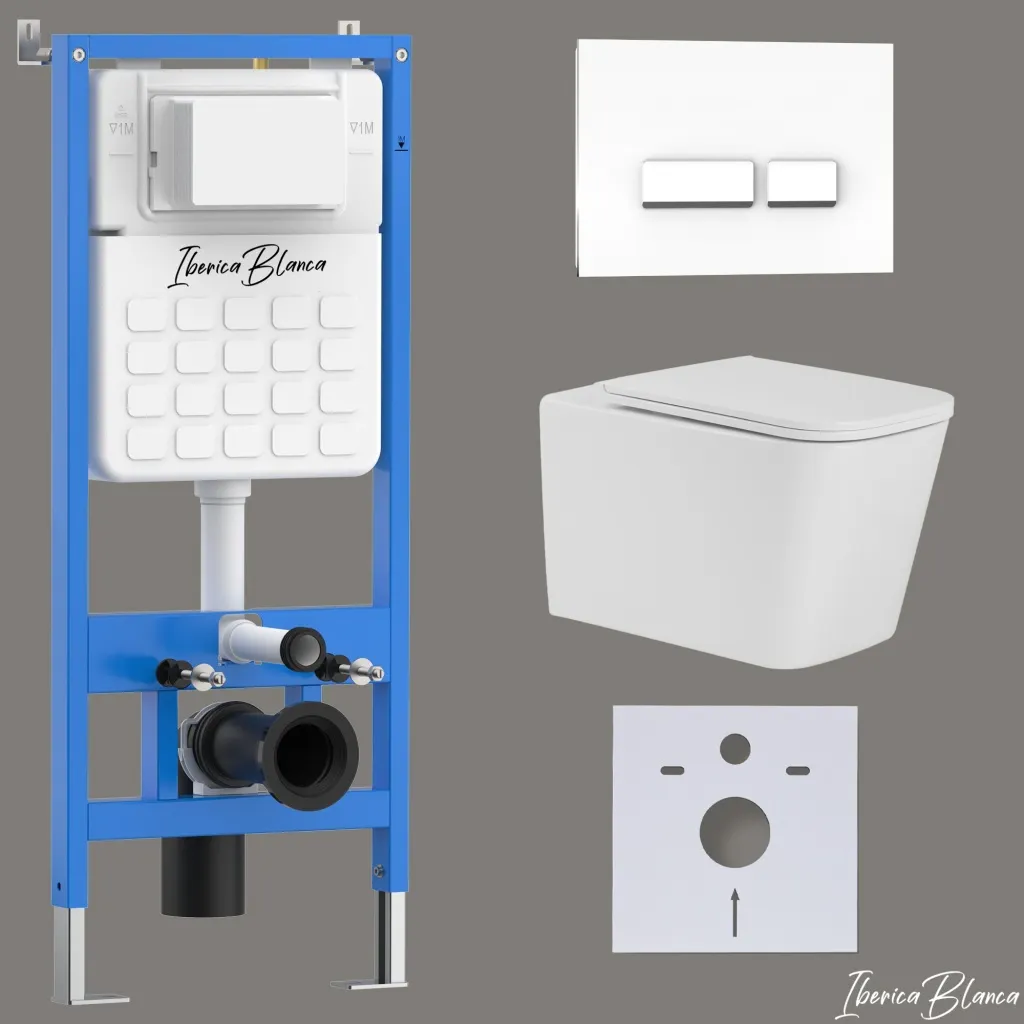 Комплект 3в1 IBERICA BLANCA инсталляция SILENCIO, унитаз TOLEDO ALTO белый, кнопка смыва CRYSTAL-R белый глянцевый арт-IB001.TLA.234.2210