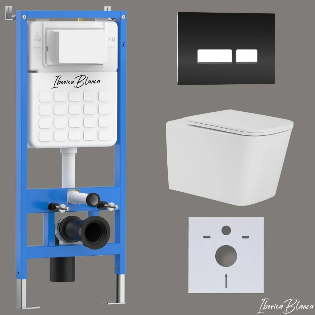 Комплект 3в1 IBERICA BLANCA инсталляция SILENCIO, унитаз TOLEDO ALTO белый, кнопка смыва CRYSTAL-R черный глянцевый арт-IB001.TLA.234.2211