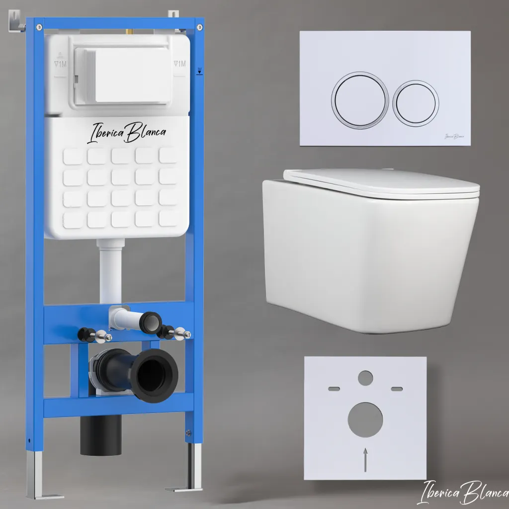 Комплект 3в1 IBERICA BLANCA инсталляция SILENCIO, унитаз TOLEDO ALTO белый, кнопка смыва ESTI-O белый глянцевый арт-IB001.TLA.234.821