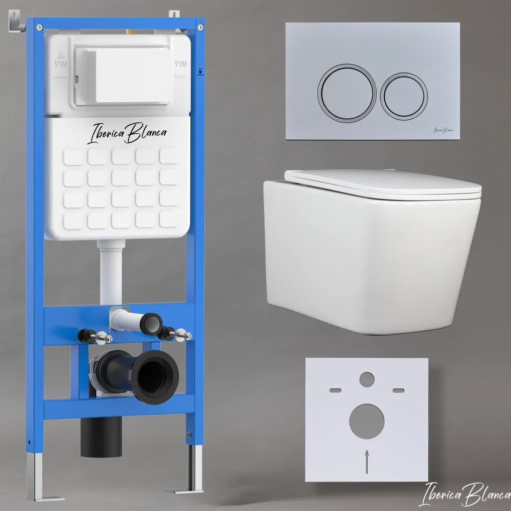 Комплект 3в1 IBERICA BLANCA инсталляция SILENCIO, унитаз TOLEDO ALTO белый, кнопка смыва ESTI-O хром матовый арт-IB001.TLA.231.824