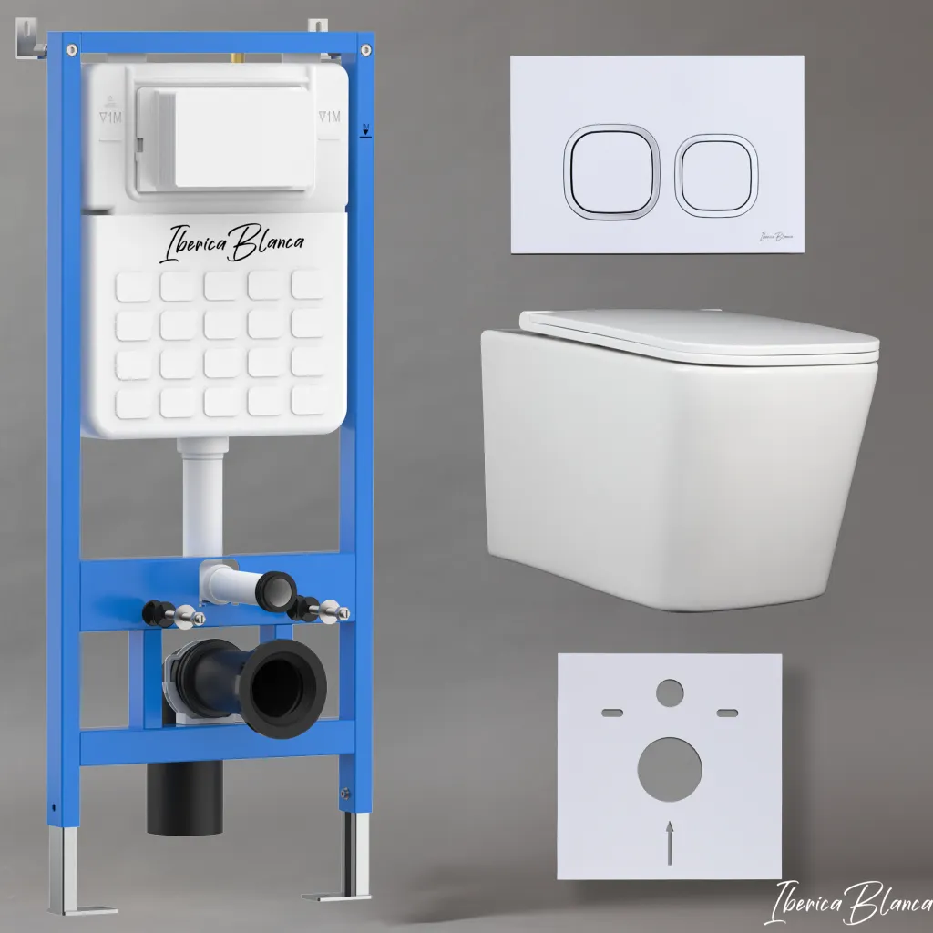Комплект 3в1 IBERICA BLANCA инсталляция SILENCIO, унитаз TOLEDO ALTO белый, кнопка смыва ESTI-Q белый глянцевый арт-IB001.TLA.234.831
