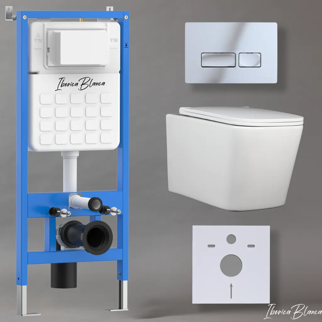 Комплект 3в1 IBERICA BLANCA инсталляция SILENCIO, унитаз TOLEDO ALTO белый, кнопка смыва ESTI-R хром глянцевый арт-IB001.TLA.234.213