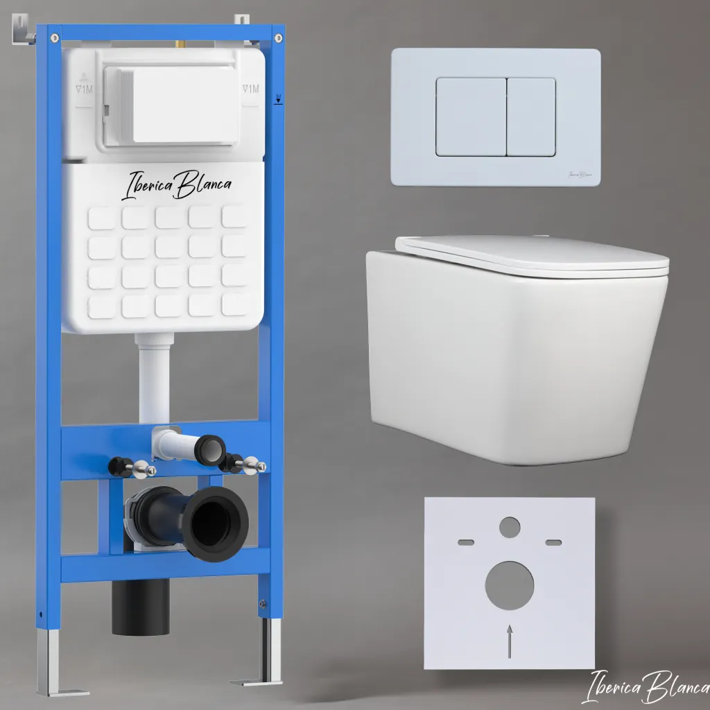 Комплект 3в1 IBERICA BLANCA инсталляция SILENCIO, унитаз TOLEDO ALTO белый, кнопка смыва INOX-C белый матовый арт-IB001.TLA.234.111