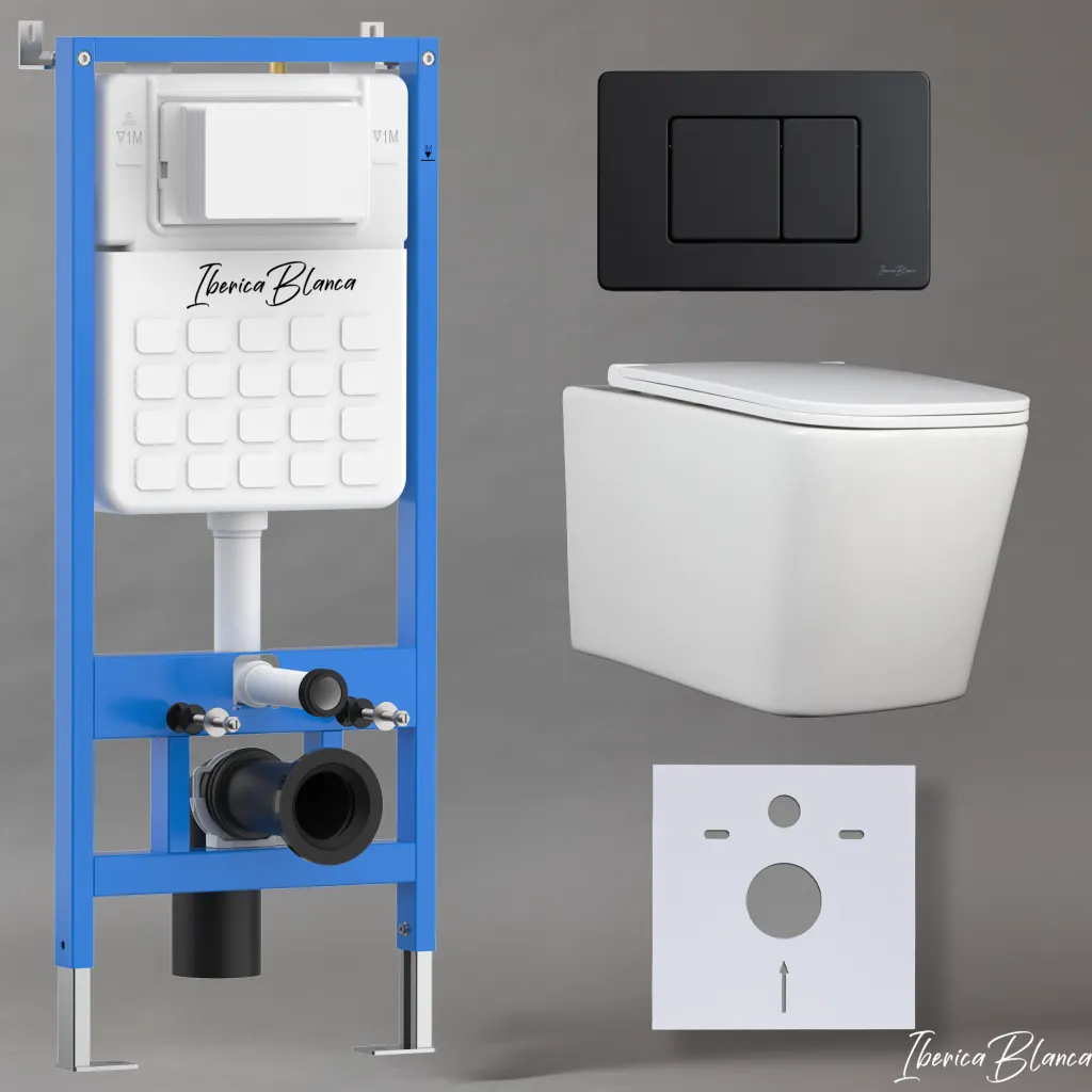 Комплект 3в1 IBERICA BLANCA инсталляция SILENCIO, унитаз TOLEDO ALTO белый, кнопка смыва INOX-C черный матовый арт-IB001.TLA.234.112
